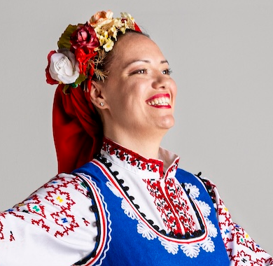 Tanya Dimitrov’s journey into the world of dance began at age six in the village of Peturch, Bulgaria, where traditional music and movement were woven into daily life. Inspired by her father, Dimitar Naydenov—a respected dancer and guardian of village traditions—Tanya developed a lifelong passion for Bulgarian folklore. Her early training at the local cultural center laid the foundation for a career dedicated to preserving and sharing the rich heritage of Bulgarian dance.